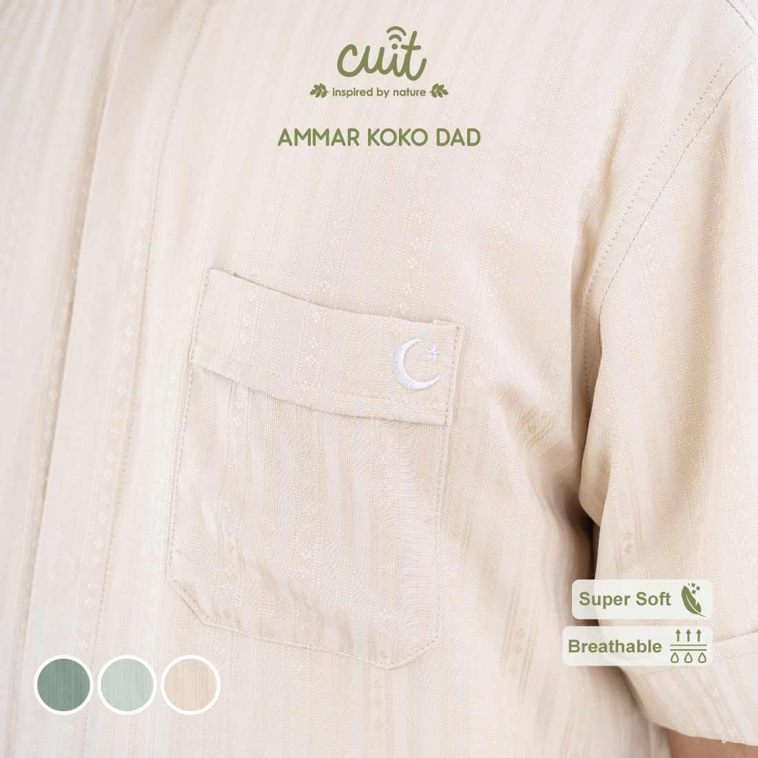Setelan baju koko pria berbahan viscose twill yang lembut, halus, dan nyaman di kulit. Material ringan, breathable, serta menyerap keringat dengan baik sehingga nyaman digunakan seharian untuk bersilaturahmi di hari raya. Dilengkapi 3 kancing depan untuk memudahkan pemakaian, saku kiri dengan aksen bordir, dan motif garis vertikal yang memberi tampilan rapi dan modern. Cocok digunakan sebagai baju koko pria, baju muslim ayah, baju koko lebaran pria, maupun pemakaian di hari-hari spesial bersama keluarga. Dapat dipadukan dengan Amir Koko Baby dan Maheer Koko Toddler untuk tampilan baju koko ayah dan anak yang senada.