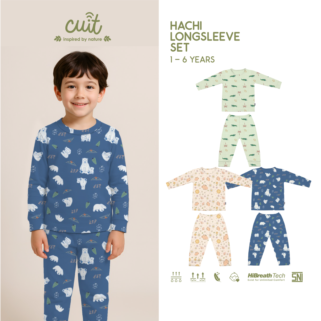 Hachi Longsleeve Set memiliki 3 pilihan motif Karakter: