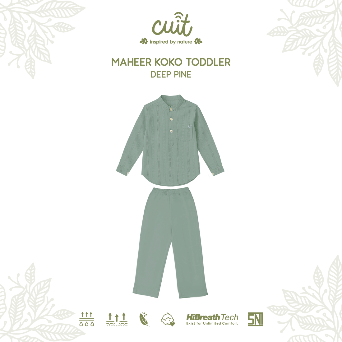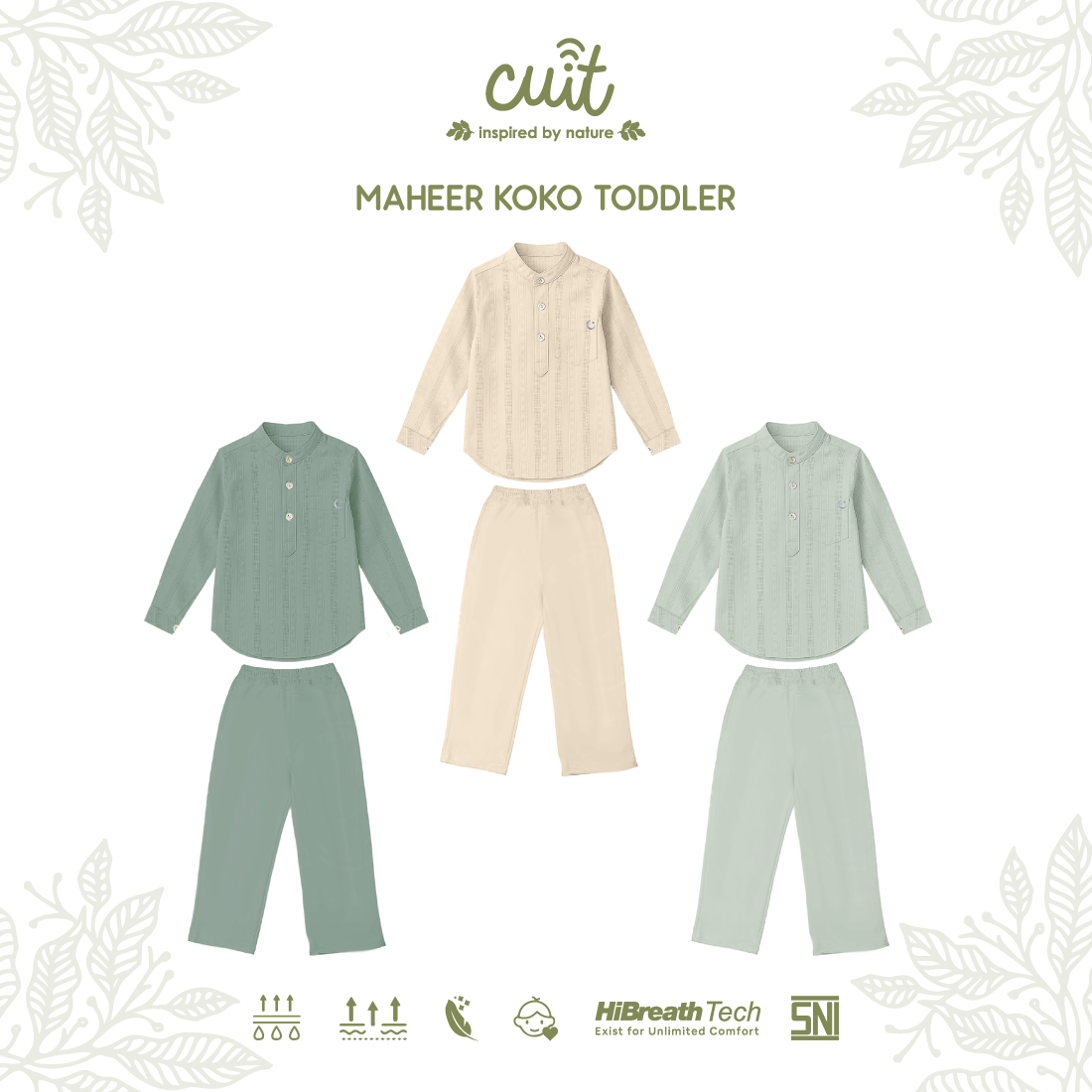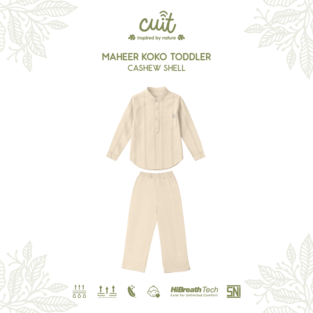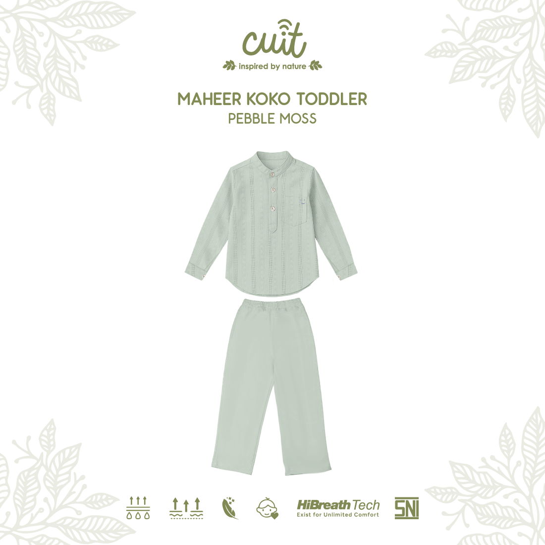 Maheer Koko Toddler setelan baju koko anak laki-laki berbahan viscose twill yang lembut, halus, dan nyaman di kulit. Material ringan, breathable, serta menyerap keringat dengan baik sehingga nyaman digunakan seharian.