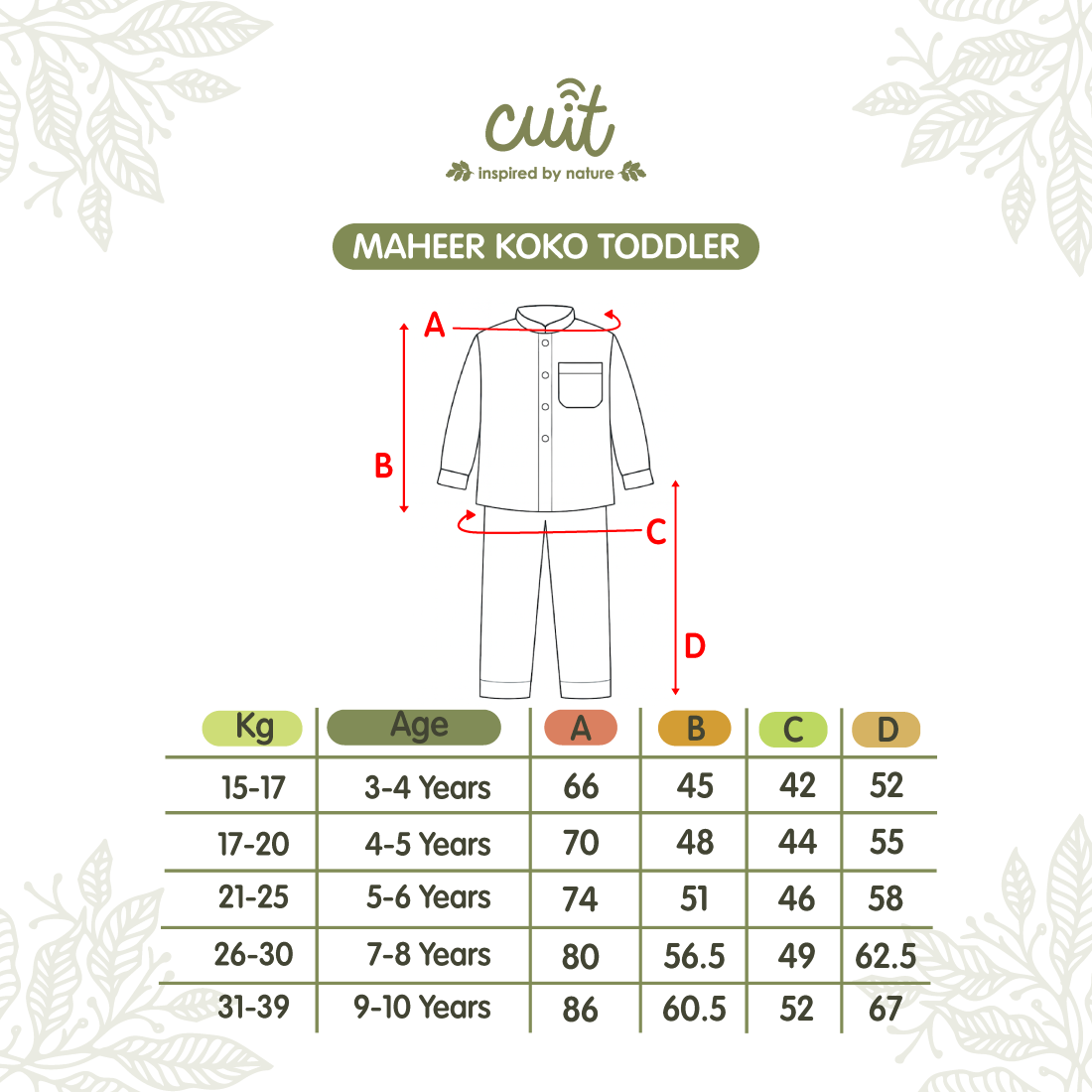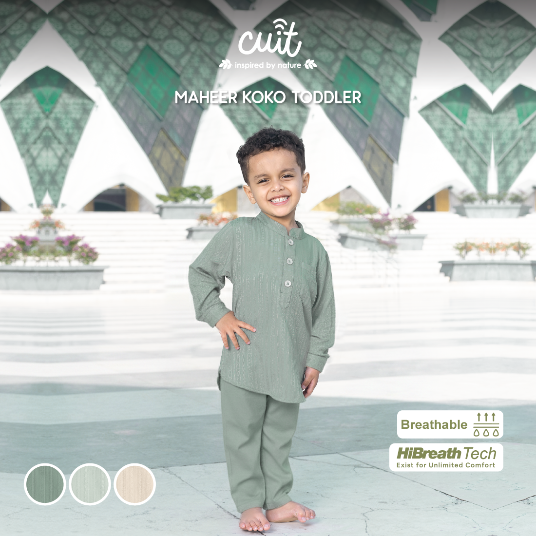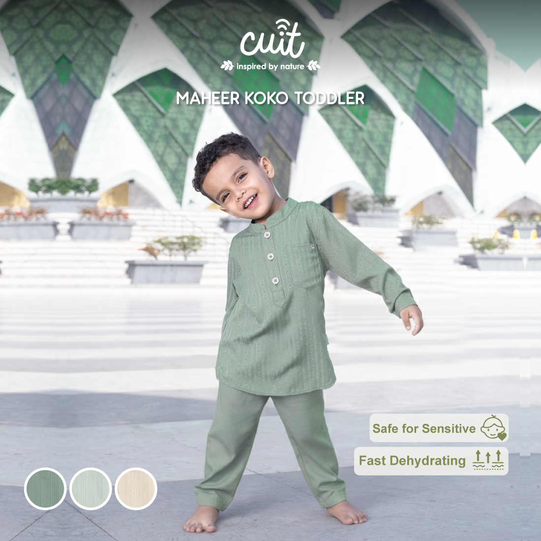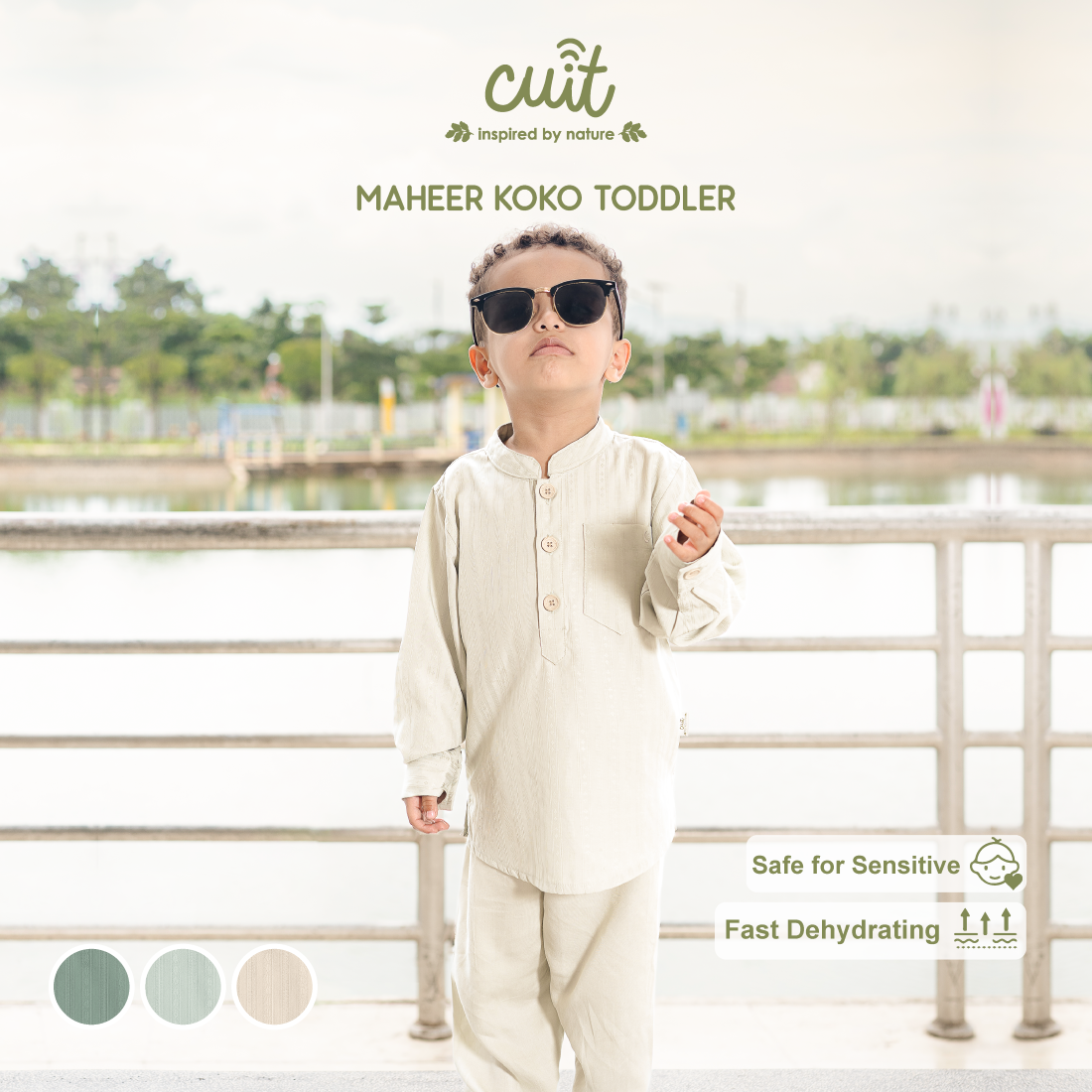 Maheer Koko Toddler setelan baju koko anak laki-laki berbahan viscose twill yang lembut, halus, dan nyaman di kulit. Material ringan, breathable, serta menyerap keringat dengan baik sehingga nyaman digunakan seharian.