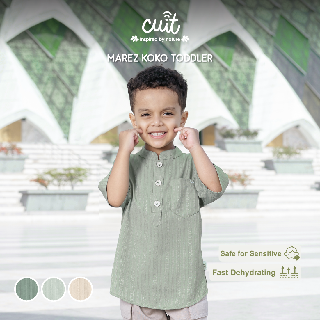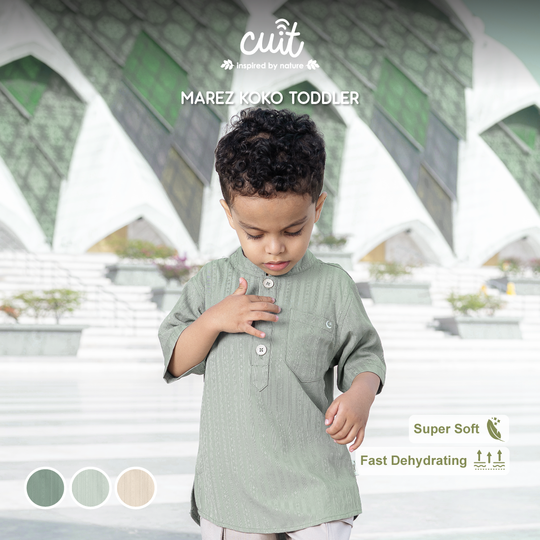 Marez Koko Toddler dibuat dari bahan viscose twill yang lembut dan halus, sehingga nyaman bersentuhan langsung dengan kulit anak. Bahannya ringan, sejuk, dan memiliki sirkulasi udara yang baik (breathable), membuat si kecil tetap nyaman saat beraktivitas maupun beribadah.