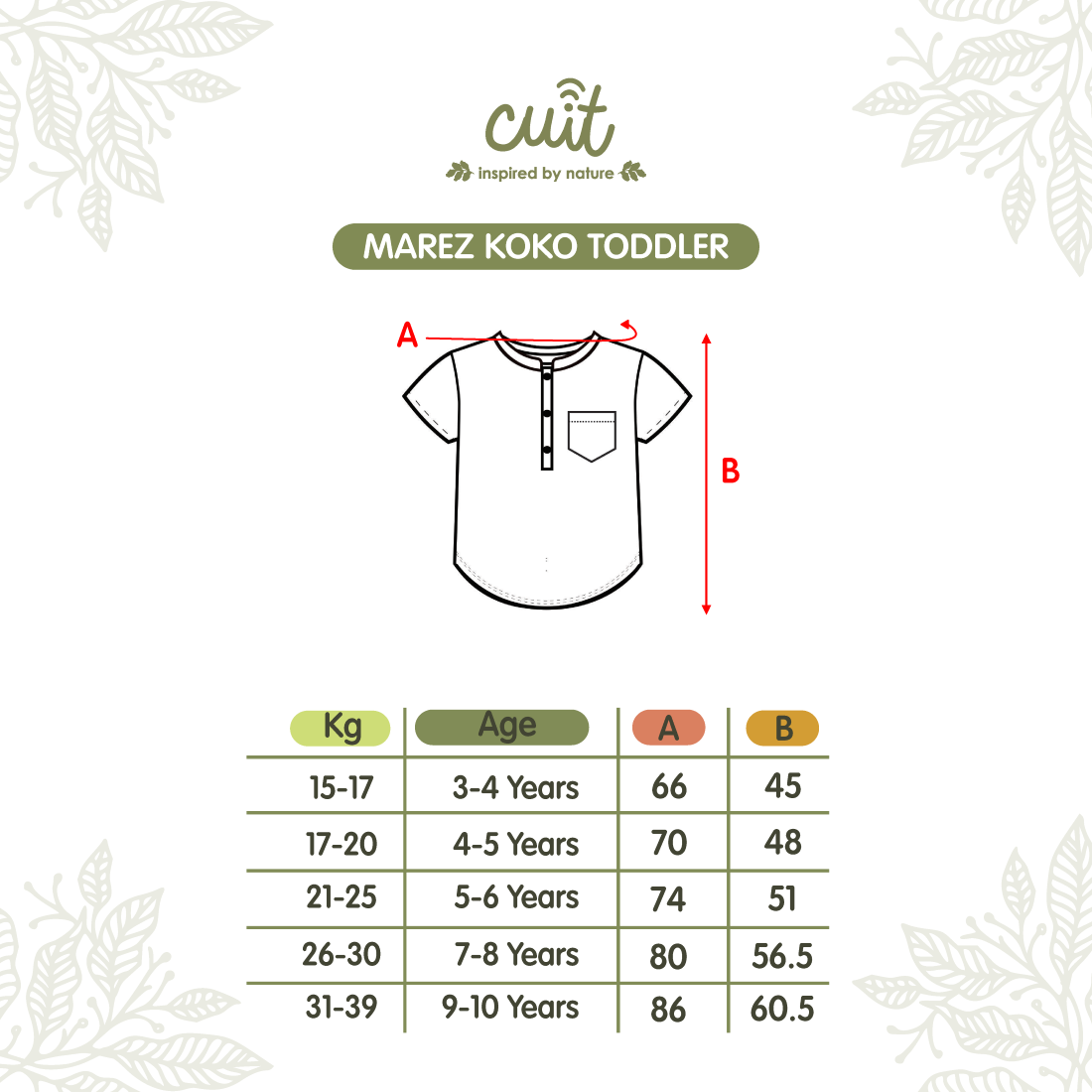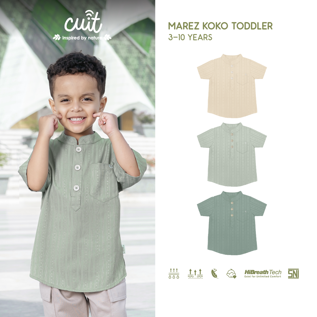Marez Koko Toddler cocok digunakan untuk anak usia 3–10 tahun. Tersedia pilihan warna natural yang menenangkan dan mudah dipadukan. Untuk ayah, tersedia juga Ammar Koko Dad, sehingga tampilan ayah dan anak bisa senada dan semakin eye-catching.