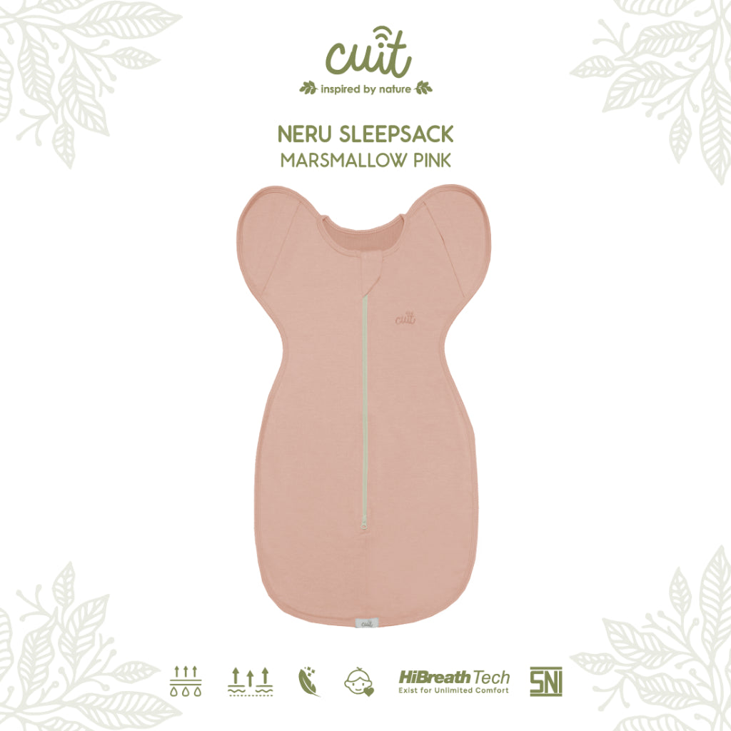 Kantung tidur Neru didesain dengan akses lengan flexible juga dapat menyesuaikan tahap perkembangan anak. Untuk usia 0-1 bulan dimana bayi lebih nyaman dengan posisi bedong tangan di dalam, maupun usia 3-6 bulan dimana tangan maupun kaki bayi sudah bergerak aktif saat tidur, dikarenakan bayi sudah aktif belajar berguling maupun menendang selimut.