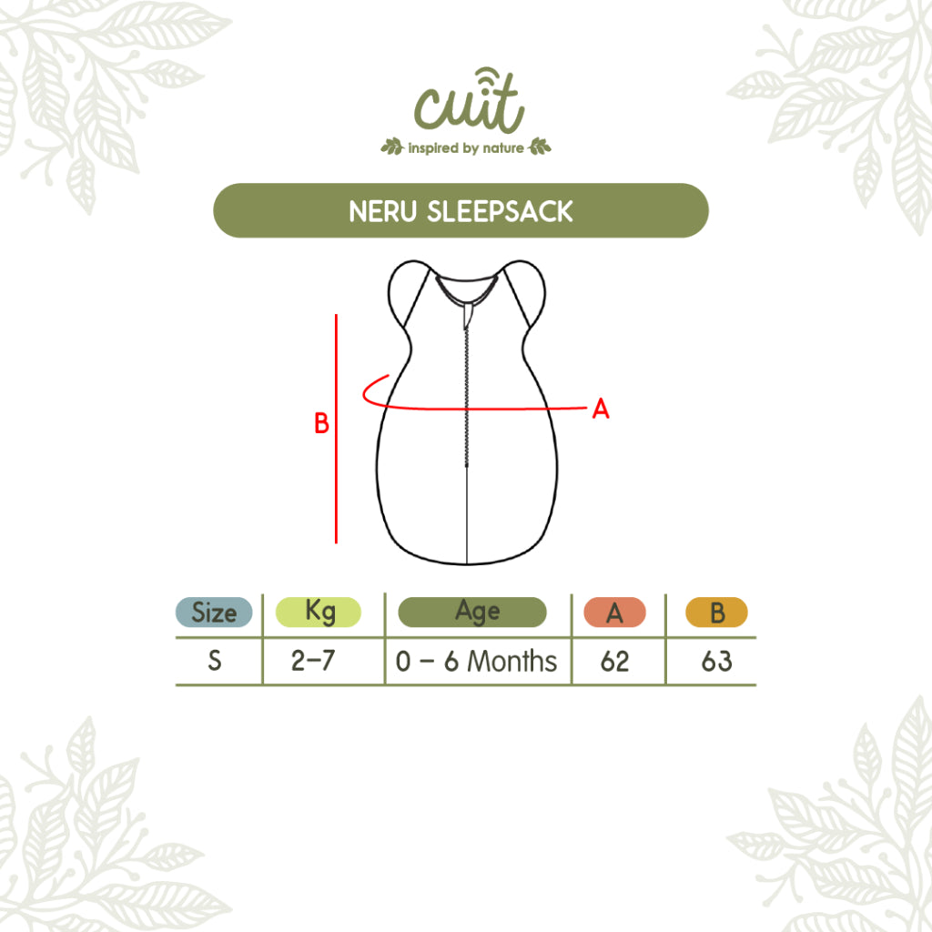 Cuit Kantong Tidur Bayi Bedong Bayi Instan Neru ( Sleeping Sack / Sleeping Bag ) terbuat dari bahan Baby Terry Spandex yang lembut, elastis dan menghangatkan. Praktis untuk dipakai traveling / bepergian maupun untuk penggunaan sehari-hari di dalam rumah.